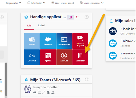 Nu zien we dit nog niet direct dit op je portal staan. Dit komt omdat we de Apps Widget aan je site moet toewijzen. Dit kan bij iedereen anders zijn en hangt af van hoe je pagina opgebouwd is.
